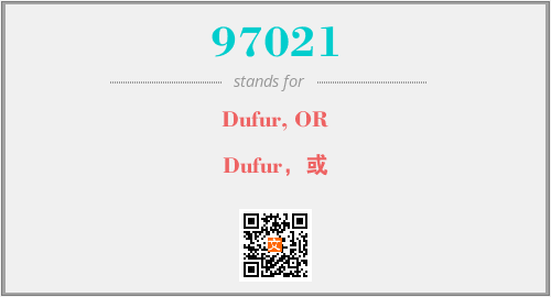 上述内容是“Dufur, OR”作为“97021”的缩写,解释为“Dufur,或”时的信息,以及英文缩略词97021所代表的英文单词,其对应的中文拼音、详细解释以及在英文中的流行度和相关分类、应用领域及应用示例等。
