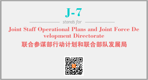 英文缩略词“J-7”经常作为“Joint Staff Operational Plans and Joint Force Development Directorate”的英文缩写来使用,中文表示:“联合参谋部行动计划和联合部队发展局”。本文将详细介绍英文缩写词J-7所代表英文单词,其对应的中文拼音、详细解释以及在英语中的流行度。此外,还有关于缩略词J-7的分类、应用领域及相关应用示例等。