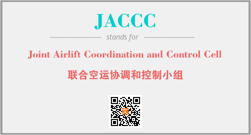英文缩略词“JACCC”经常作为“Joint Airlift Coordination and Control Cell”的英文缩写来使用,中文表示:“联合空运协调和控制小组”。本文将详细介绍英文缩写词JACCC所代表英文单词,其对应的中文拼音、详细解释以及在英语中的流行度。此外,还有关于缩略词JACCC的分类、应用领域及相关应用示例等。
