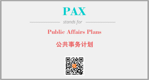 上述内容是“Public Affairs Plans”作为“PAX”的缩写,解释为“公共事务计划”时的信息,以及英文缩略词PAX所代表的英文单词,其对应的中文拼音、详细解释以及在英文中的流行度和相关分类、应用领域及应用示例等。
