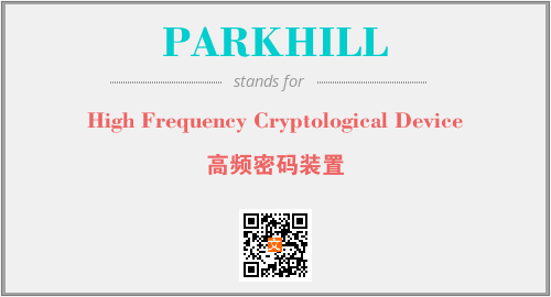 上述内容是“High Frequency Cryptological Device”作为“PARKHILL”的缩写,解释为“高频密码装置”时的信息,以及英文缩略词PARKHILL所代表的英文单词,其对应的中文拼音、详细解释以及在英文中的流行度和相关分类、应用领域及应用示例等。