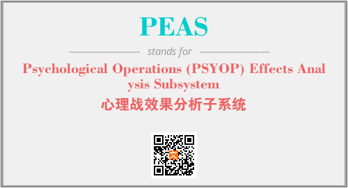 上述内容是“Psychological Operations (PSYOP) Effects Analysis Subsystem”作为“PEAS”的缩写,解释为“心理战效果分析子系统”时的信息,以及英文缩略词PEAS所代表的英文单词,其对应的中文拼音、详细解释以及在英文中的流行度和相关分类、应用领域及应用示例等。