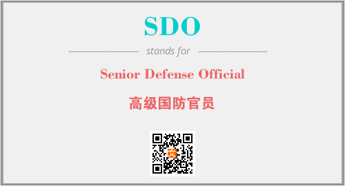 上述内容是“Senior Defense Official”作为“SDO”的缩写,解释为“高级国防官员”时的信息,以及英文缩略词SDO所代表的英文单词,其对应的中文拼音、详细解释以及在英文中的流行度和相关分类、应用领域及应用示例等。