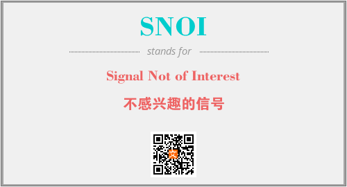 上述内容是“Signal Not of Interest”作为“SNOI”的缩写,解释为“不感兴趣的信号”时的信息,以及英文缩略词SNOI所代表的英文单词,其对应的中文拼音、详细解释以及在英文中的流行度和相关分类、应用领域及应用示例等。