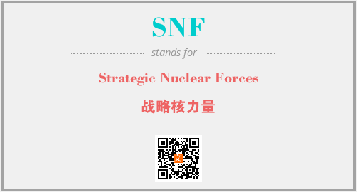 上述内容是“Strategic Nuclear Forces”作为“SNF”的缩写,解释为“战略核力量”时的信息,以及英文缩略词SNF所代表的英文单词,其对应的中文拼音、详细解释以及在英文中的流行度和相关分类、应用领域及应用示例等。