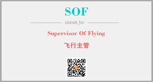 上述内容是“Supervisor Of Flying”作为“SOF”的缩写,解释为“飞行主管”时的信息,以及英文缩略词SOF所代表的英文单词,其对应的中文拼音、详细解释以及在英文中的流行度和相关分类、应用领域及应用示例等。