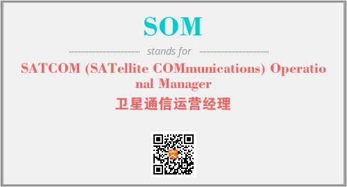 英文缩略词“SOM”经常作为“SATCOM (SATellite COMmunications) Operational Manager”的英文缩写来使用,中文表示:“卫星通信运营经理”。本文将详细介绍英文缩写词SOM所代表英文单词,其对应的中文拼音、详细解释以及在英语中的流行度。此外,还有关于缩略词SOM的分类、应用领域及相关应用示例等。