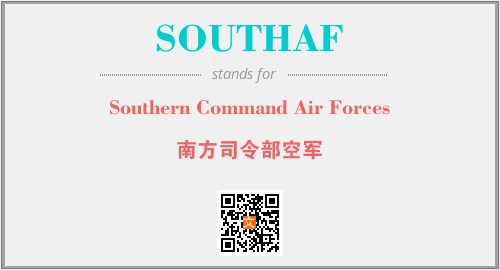 上述内容是“Southern Command Air Forces”作为“SOUTHAF”的缩写,解释为“南方司令部空军”时的信息,以及英文缩略词SOUTHAF所代表的英文单词,其对应的中文拼音、详细解释以及在英文中的流行度和相关分类、应用领域及应用示例等。