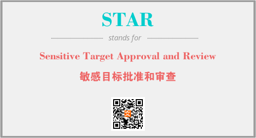 上述内容是“Sensitive Target Approval and Review”作为“STAR”的缩写,解释为“敏感目标批准和审查”时的信息,以及英文缩略词STAR所代表的英文单词,其对应的中文拼音、详细解释以及在英文中的流行度和相关分类、应用领域及应用示例等。
