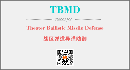 上述内容是“Theater Ballistic Missile Defense”作为“TBMD”的缩写,解释为“战区弹道导弹防御”时的信息,以及英文缩略词TBMD所代表的英文单词,其对应的中文拼音、详细解释以及在英文中的流行度和相关分类、应用领域及应用示例等。