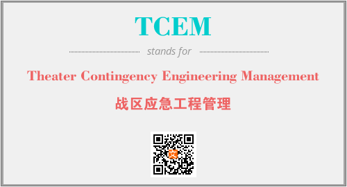 英文缩略词“TCEM”经常作为“Theater Contingency Engineering Management”的英文缩写来使用,中文表示:“战区应急工程管理”。本文将详细介绍英文缩写词TCEM所代表英文单词,其对应的中文拼音、详细解释以及在英语中的流行度。此外,还有关于缩略词TCEM的分类、应用领域及相关应用示例等。