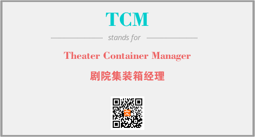 英文缩略词“TCM”经常作为“Theater Container Manager”的英文缩写来使用,中文表示:“剧院集装箱经理”。本文将详细介绍英文缩写词TCM所代表英文单词,其对应的中文拼音、详细解释以及在英语中的流行度。此外,还有关于缩略词TCM的分类、应用领域及相关应用示例等。