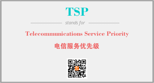 英文缩略词“TSP”经常作为“Telecommunications Service Priority”的英文缩写来使用,中文表示:“电信服务优先级”。本文将详细介绍英文缩写词TSP所代表英文单词,其对应的中文拼音、详细解释以及在英语中的流行度。此外,还有关于缩略词TSP的分类、应用领域及相关应用示例等。