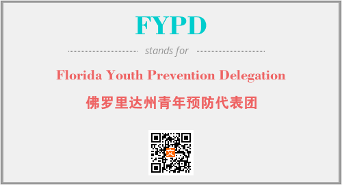 上述内容是“Florida Youth Prevention Delegation”作为“FYPD”的缩写,解释为“佛罗里达州青年预防代表团”时的信息,以及英文缩略词FYPD所代表的英文单词,其对应的中文拼音、详细解释以及在英文中的流行度和相关分类、应用领域及应用示例等。
