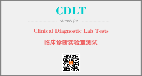 英文缩略词“CDLT”经常作为“Clinical Diagnostic Lab Tests”的英文缩写来使用,中文表示:“临床诊断实验室测试”。本文将详细介绍英文缩写词CDLT所代表英文单词,其对应的中文拼音、详细解释以及在英语中的流行度。此外,还有关于缩略词CDLT的分类、应用领域及相关应用示例等。