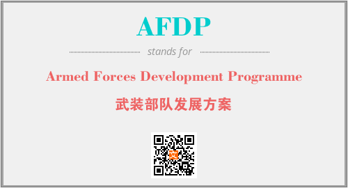 上述内容是“Armed Forces Development Programme”作为“AFDP”的缩写,解释为“武装部队发展方案”时的信息,以及英文缩略词AFDP所代表的英文单词,其对应的中文拼音、详细解释以及在英文中的流行度和相关分类、应用领域及应用示例等。