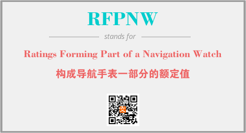 上述内容是“Ratings Forming Part of a Navigation Watch”作为“RFPNW”的缩写,解释为“构成导航手表一部分的额定值”时的信息,以及英文缩略词RFPNW所代表的英文单词,其对应的中文拼音、详细解释以及在英文中的流行度和相关分类、应用领域及应用示例等。