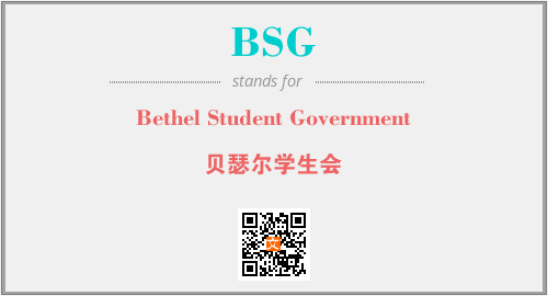 上述内容是“Bethel Student Government”作为“BSG”的缩写,解释为“贝瑟尔学生会”时的信息,以及英文缩略词BSG所代表的英文单词,其对应的中文拼音、详细解释以及在英文中的流行度和相关分类、应用领域及应用示例等。