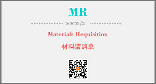 英文缩略词“MR”经常作为“Materials Requisition”的英文缩写来使用,中文表示:“材料请购单”。本文将详细介绍英文缩写词MR所代表英文单词,其对应的中文拼音、详细解释以及在英语中的流行度。此外,还有关于缩略词MR的分类、应用领域及相关应用示例等。