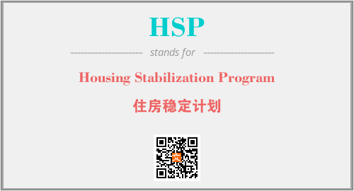 上述内容是“Housing Stabilization Program”作为“HSP”的缩写,解释为“住房稳定计划”时的信息,以及英文缩略词HSP所代表的英文单词,其对应的中文拼音、详细解释以及在英文中的流行度和相关分类、应用领域及应用示例等。