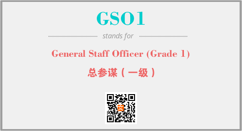 上述内容是“General Staff Officer (Grade 1)”作为“GSO1”的缩写,解释为“总参谋(一级)”时的信息,以及英文缩略词GSO1所代表的英文单词,其对应的中文拼音、详细解释以及在英文中的流行度和相关分类、应用领域及应用示例等。