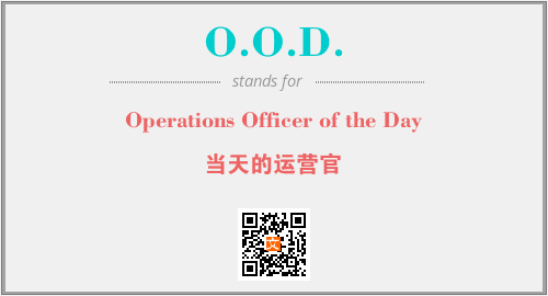 英文缩略词“O.O.D.”经常作为“Operations Officer of the Day”的英文缩写来使用,中文表示:“当天的运营官”。本文将详细介绍英文缩写词O.O.D.所代表英文单词,其对应的中文拼音、详细解释以及在英语中的流行度。此外,还有关于缩略词O.O.D.的分类、应用领域及相关应用示例等。