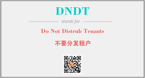 上述内容是“Do Not Distrub Tenants”作为“DNDT”的缩写,解释为“不要分发租户”时的信息,以及英文缩略词DNDT所代表的英文单词,其对应的中文拼音、详细解释以及在英文中的流行度和相关分类、应用领域及应用示例等。