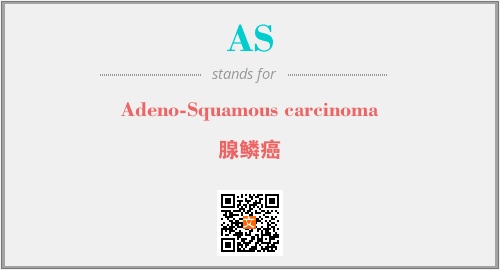 上述内容是“Adeno-Squamous carcinoma”作为“AS”的缩写,解释为“腺鳞癌”时的信息,以及英文缩略词AS所代表的英文单词,其对应的中文拼音、详细解释以及在英文中的流行度和相关分类、应用领域及应用示例等。