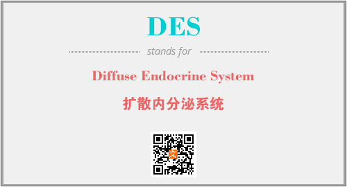 上述内容是“Diffuse Endocrine System”作为“DES”的缩写,解释为“扩散内分泌系统”时的信息,以及英文缩略词DES所代表的英文单词,其对应的中文拼音、详细解释以及在英文中的流行度和相关分类、应用领域及应用示例等。
