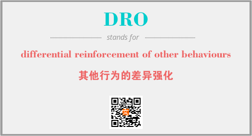 上述内容是“differential reinforcement of other behaviours”作为“DRO”的缩写,解释为“其他行为的差异强化”时的信息,以及英文缩略词DRO所代表的英文单词,其对应的中文拼音、详细解释以及在英文中的流行度和相关分类、应用领域及应用示例等。
