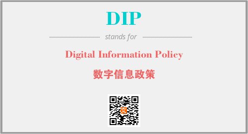 英文缩略词“DIP”经常作为“Digital Information Policy”的英文缩写来使用,中文表示:“数字信息政策”。本文将详细介绍英文缩写词DIP所代表英文单词,其对应的中文拼音、详细解释以及在英语中的流行度。此外,还有关于缩略词DIP的分类、应用领域及相关应用示例等。