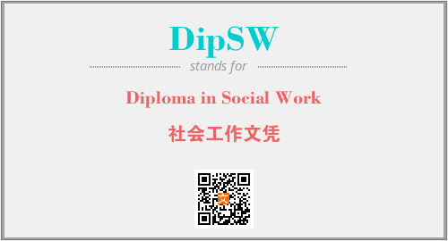 上述内容是“Diploma in Social Work”作为“DipSW”的缩写,解释为“社会工作文凭”时的信息,以及英文缩略词DipSW所代表的英文单词,其对应的中文拼音、详细解释以及在英文中的流行度和相关分类、应用领域及应用示例等。