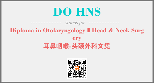 上述内容是“Diploma in Otolaryngology–Head & Neck Surgery”作为“DO HNS”的缩写,解释为“耳鼻咽喉-头颈外科文凭”时的信息,以及英文缩略词DO HNS所代表的英文单词,其对应的中文拼音、详细解释以及在英文中的流行度和相关分类、应用领域及应用示例等。