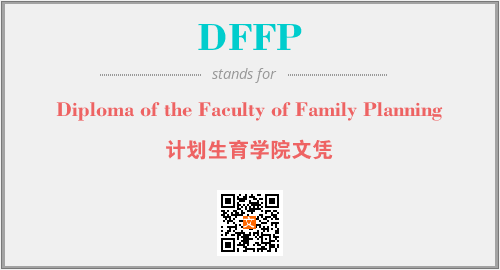 上述内容是“Diploma of the Faculty of Family Planning”作为“DFFP”的缩写,解释为“计划生育学院文凭”时的信息,以及英文缩略词DFFP所代表的英文单词,其对应的中文拼音、详细解释以及在英文中的流行度和相关分类、应用领域及应用示例等。