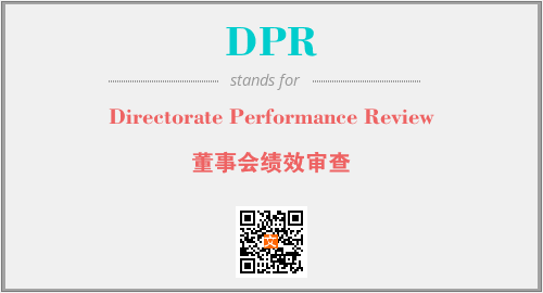 英文缩略词“DPR”经常作为“Directorate Performance Review”的英文缩写来使用,中文表示:“董事会绩效审查”。本文将详细介绍英文缩写词DPR所代表英文单词,其对应的中文拼音、详细解释以及在英语中的流行度。此外,还有关于缩略词DPR的分类、应用领域及相关应用示例等。