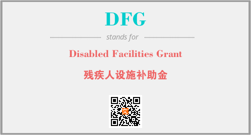 英文缩略词“DFG”经常作为“Disabled Facilities Grant”的英文缩写来使用,中文表示:“残疾人设施补助金”。本文将详细介绍英文缩写词DFG所代表英文单词,其对应的中文拼音、详细解释以及在英语中的流行度。此外,还有关于缩略词DFG的分类、应用领域及相关应用示例等。