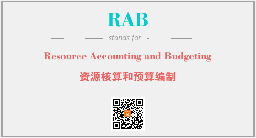 上述内容是“Resource Accounting and Budgeting”作为“RAB”的缩写,解释为“资源核算和预算编制”时的信息,以及英文缩略词RAB所代表的英文单词,其对应的中文拼音、详细解释以及在英文中的流行度和相关分类、应用领域及应用示例等。
