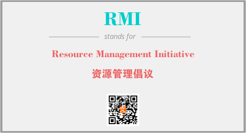 英文缩略词“RMI”经常作为“Resource Management Initiative”的英文缩写来使用,中文表示:“资源管理倡议”。本文将详细介绍英文缩写词RMI所代表英文单词,其对应的中文拼音、详细解释以及在英语中的流行度。此外,还有关于缩略词RMI的分类、应用领域及相关应用示例等。