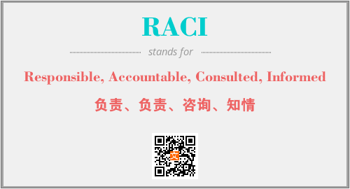 英文缩略词“RACI”经常作为“Responsible, Accountable, Consulted, Informed”的英文缩写来使用,中文表示:“负责、负责、咨询、知情”。本文将详细介绍英文缩写词RACI所代表英文单词,其对应的中文拼音、详细解释以及在英语中的流行度。此外,还有关于缩略词RACI的分类、应用领域及相关应用示例等。