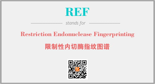 上述内容是“Restriction Endonuclease Fingerprinting”作为“REF”的缩写,解释为“限制性内切酶指纹图谱”时的信息,以及英文缩略词REF所代表的英文单词,其对应的中文拼音、详细解释以及在英文中的流行度和相关分类、应用领域及应用示例等。
