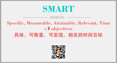 上述内容是“Specific, Measurable, Attainable, Relevant, Times–objectives”作为“SMART”的缩写,解释为“具体、可衡量、可实现、相关的时间目标”时的信息,以及英文缩略词SMART所代表的英文单词,其对应的中文拼音、详细解释以及在英文中的流行度和相关分类、应用领域及应用示例等。