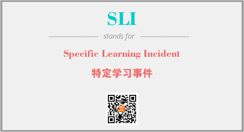 上述内容是“Specific Learning Incident”作为“SLI”的缩写,解释为“特定学习事件”时的信息,以及英文缩略词SLI所代表的英文单词,其对应的中文拼音、详细解释以及在英文中的流行度和相关分类、应用领域及应用示例等。