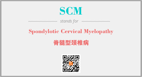 英文缩略词“SCM”经常作为“Spondylotic Cervical Myelopathy”的英文缩写来使用,中文表示:“脊髓型颈椎病”。本文将详细介绍英文缩写词SCM所代表英文单词,其对应的中文拼音、详细解释以及在英语中的流行度。此外,还有关于缩略词SCM的分类、应用领域及相关应用示例等。