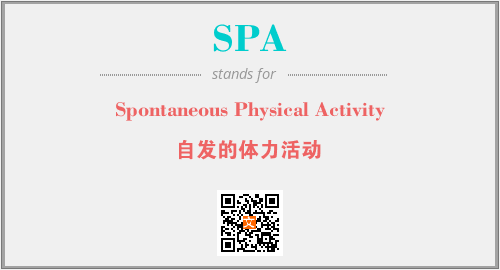 上述内容是“Spontaneous Physical Activity”作为“SPA”的缩写,解释为“自发的体力活动”时的信息,以及英文缩略词SPA所代表的英文单词,其对应的中文拼音、详细解释以及在英文中的流行度和相关分类、应用领域及应用示例等。