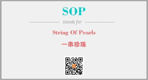 英文缩略词“SOP”经常作为“String Of Pearls”的英文缩写来使用,中文表示:“一串珍珠”。本文将详细介绍英文缩写词SOP所代表英文单词,其对应的中文拼音、详细解释以及在英语中的流行度。此外,还有关于缩略词SOP的分类、应用领域及相关应用示例等。