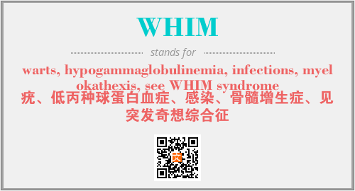 以上为warts, hypogammaglobulinemia, infections, myelokathexis, see WHIM syndrome英文缩略词WHIM的中文解释,以及该英文缩写在英语的流行度、分类和应用领域方面的信息。