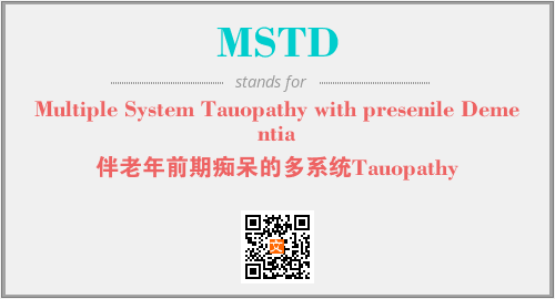 上述内容是“Multiple System Tauopathy with presenile Dementia”作为“MSTD”的缩写,解释为“伴老年前期痴呆的多系统Tauopathy”时的信息,以及英文缩略词MSTD所代表的英文单词,其对应的中文拼音、详细解释以及在英文中的流行度和相关分类、应用领域及应用示例等。
