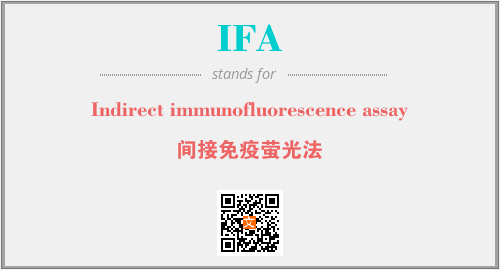 英文缩略词“IFA”经常作为“Indirect immunofluorescence assay”的英文缩写来使用,中文表示:“间接免疫萤光法”。本文将详细介绍英文缩写词IFA所代表英文单词,其对应的中文拼音、详细解释以及在英语中的流行度。此外,还有关于缩略词IFA的分类、应用领域及相关应用示例等。