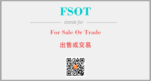 英文缩略词“FSOT”经常作为“For Sale Or Trade”的英文缩写来使用,中文表示:“出售或交易”。本文将详细介绍英文缩写词FSOT所代表英文单词,其对应的中文拼音、详细解释以及在英语中的流行度。此外,还有关于缩略词FSOT的分类、应用领域及相关应用示例等。