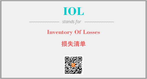 上述内容是“Inventory Of Losses”作为“IOL”的缩写,解释为“损失清单”时的信息,以及英文缩略词IOL所代表的英文单词,其对应的中文拼音、详细解释以及在英文中的流行度和相关分类、应用领域及应用示例等。